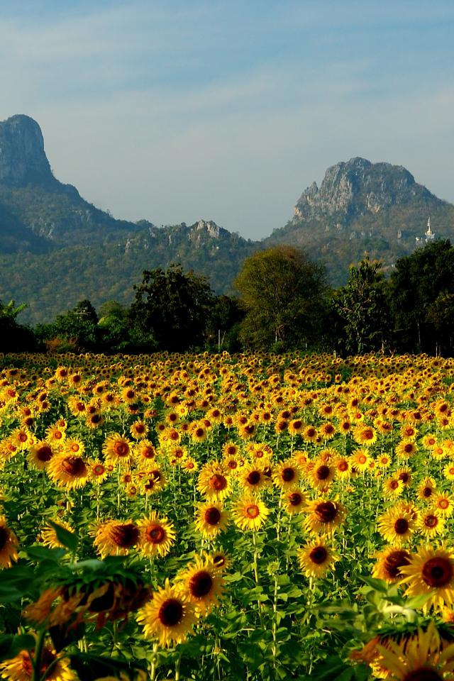Wallpaper Field of sunflowers in the resort of Lopburi, Thailand