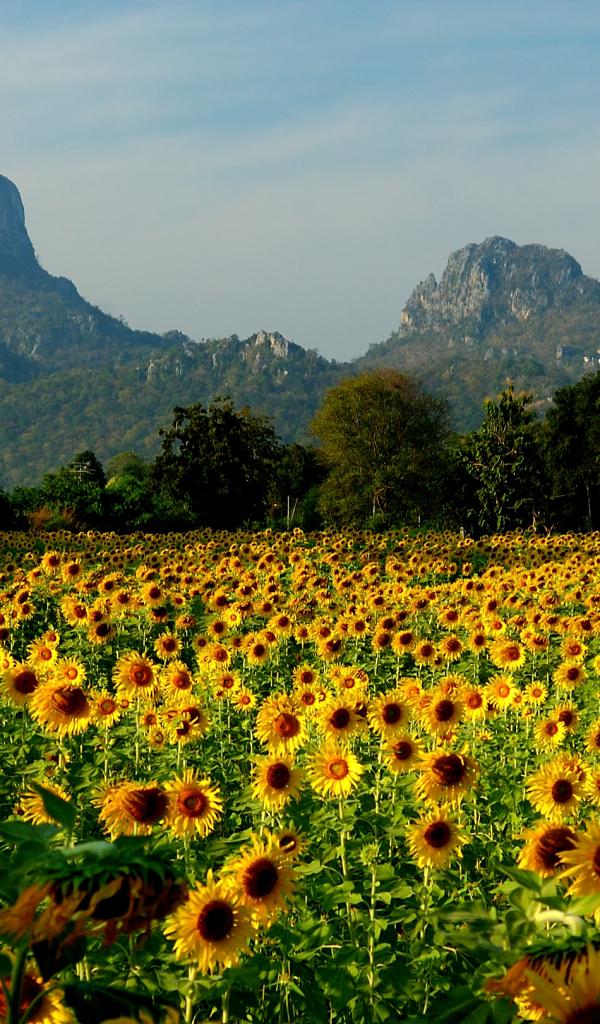 Wallpaper Field of sunflowers in the resort of Lopburi, Thailand