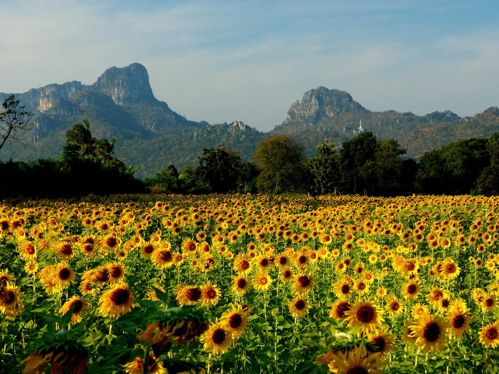 Wallpaper Field of sunflowers in the resort of Lopburi, Thailand