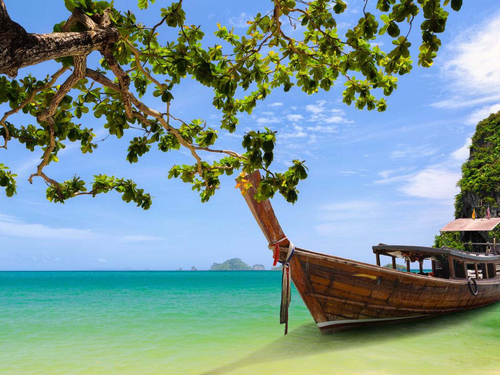 Wallpaper Boat near the shore at the resort in Krabi, Thailand
