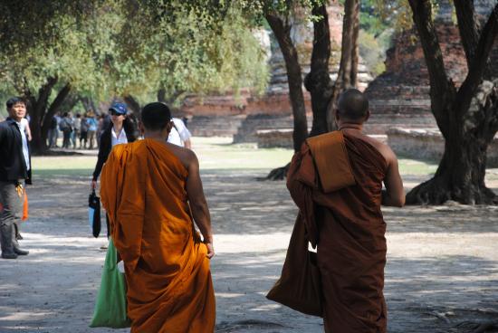 Wallpaper Buddhist monks on the street in the resort Ayuthaya, Thailand