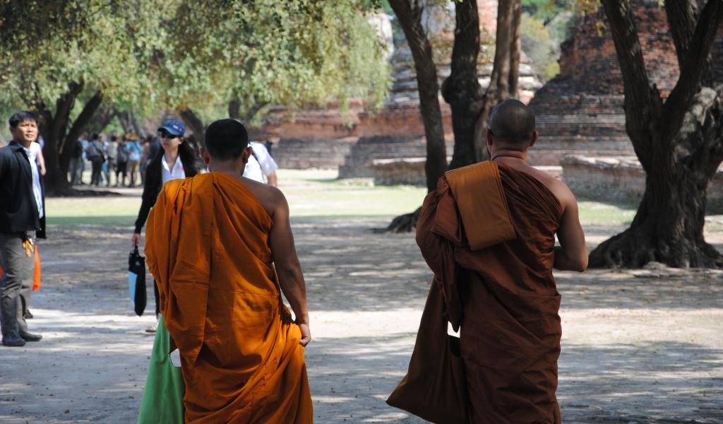 Wallpaper Buddhist monks on the street in the resort Ayuthaya, Thailand