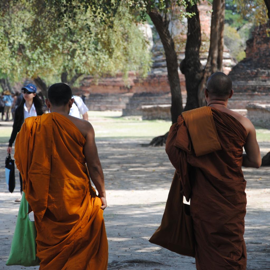 Wallpaper Buddhist monks on the street in the resort Ayuthaya, Thailand