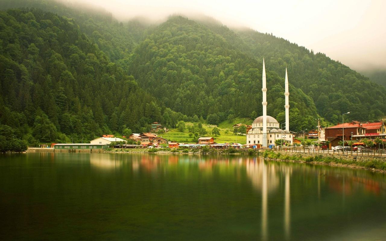 Wallpaper Mosque near the lake in Turkey, Trabzon