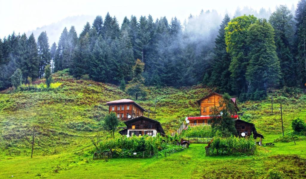 Wallpaper Wooden houses in the mountains in Turkey