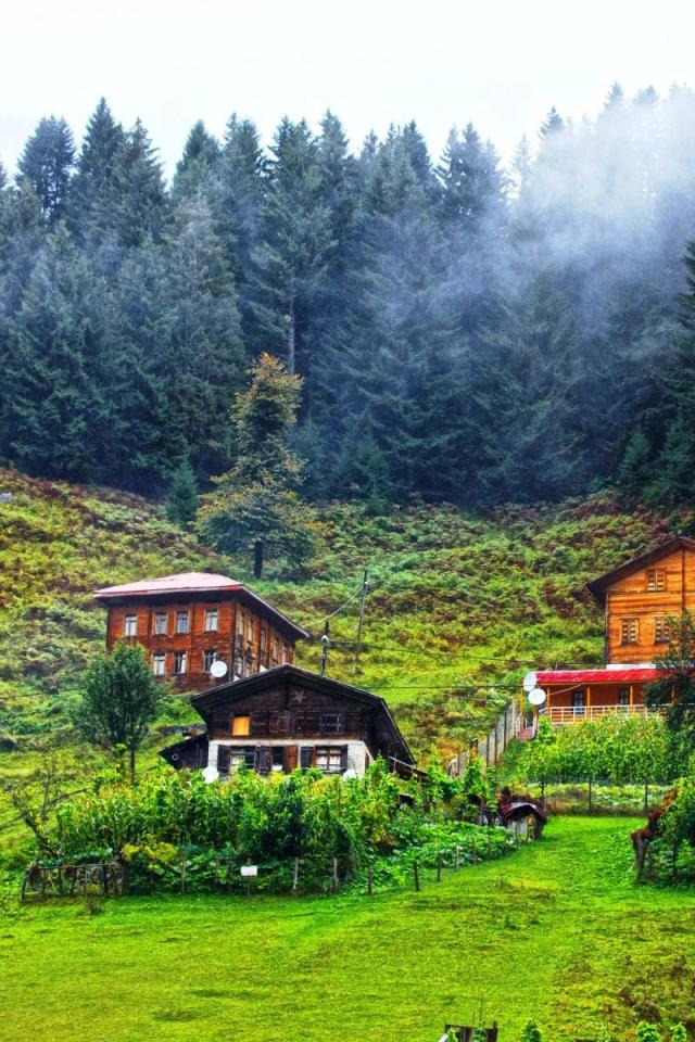 Wallpaper Wooden houses in the mountains in Turkey