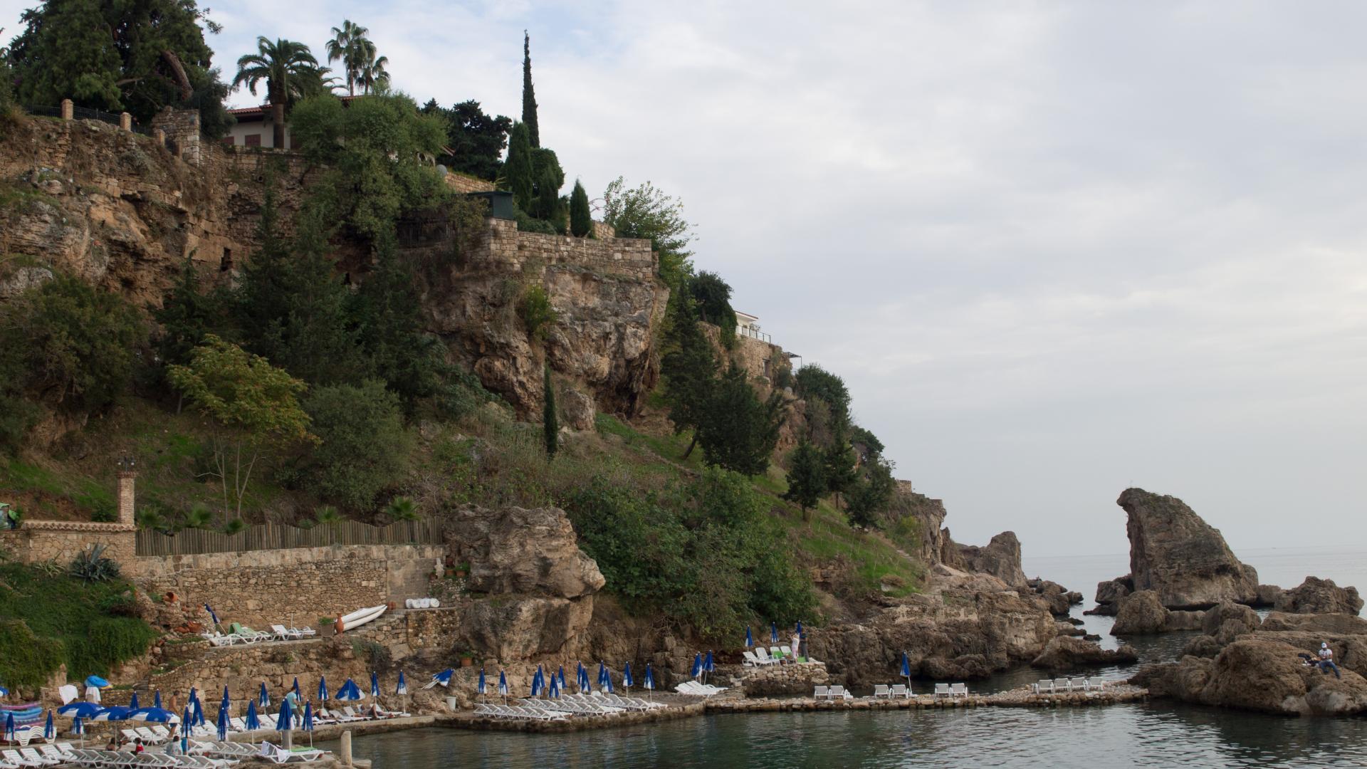 Wallpaper Rock on the coast in Belek, Turkey