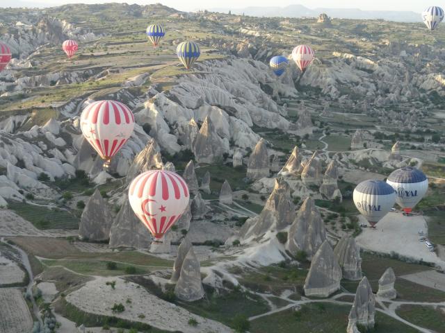 Wallpaper Fairy chimneys Turkey the picture from air balloon
