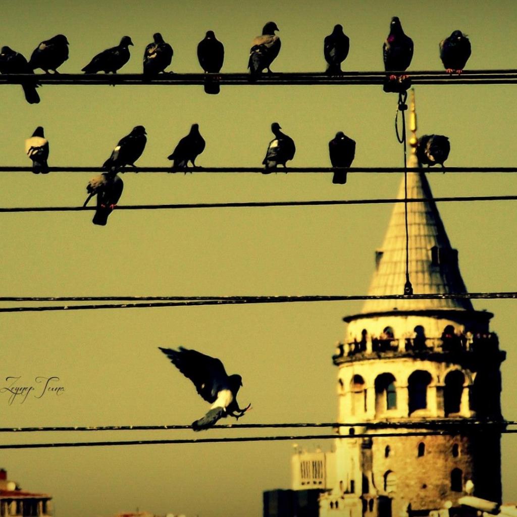 Wallpaper Pigeons on wires in Istanbul