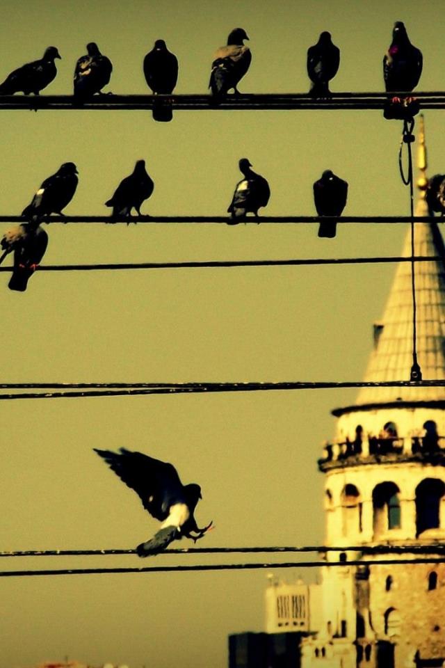 Wallpaper Pigeons on wires in Istanbul