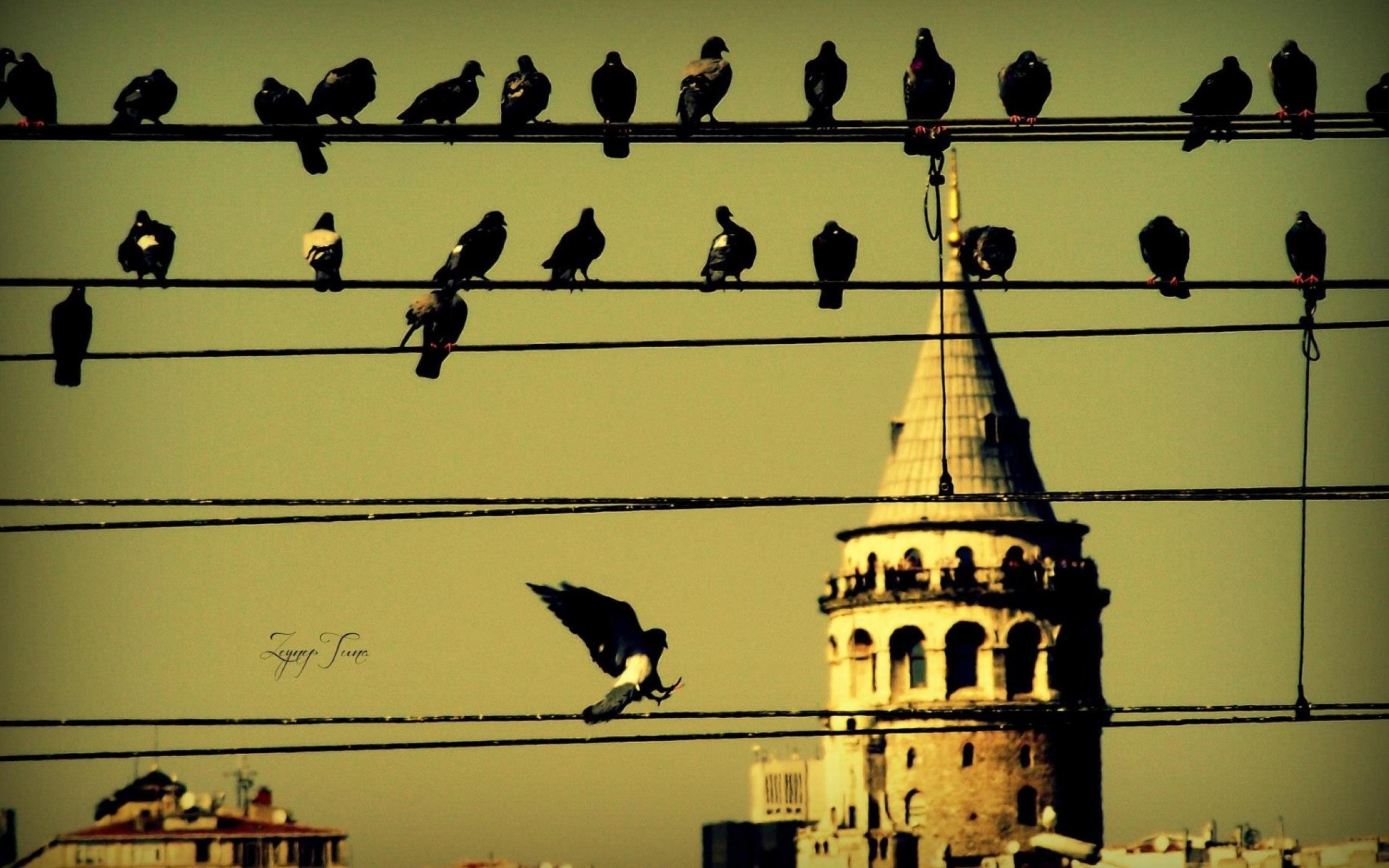 Wallpaper Pigeons on wires in Istanbul