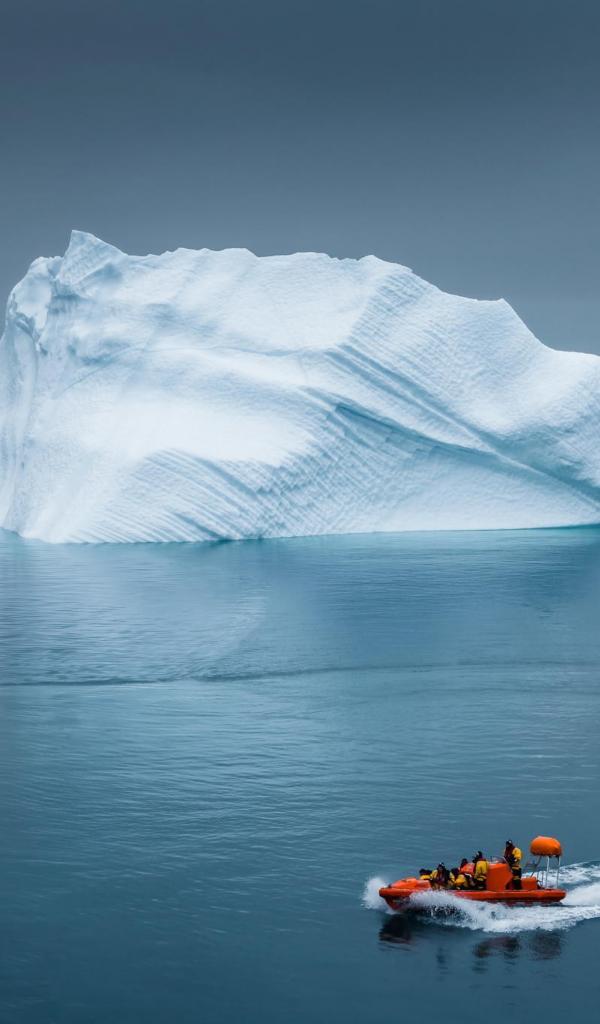 Wallpaper Motorboat at the iceberg in the Arctic