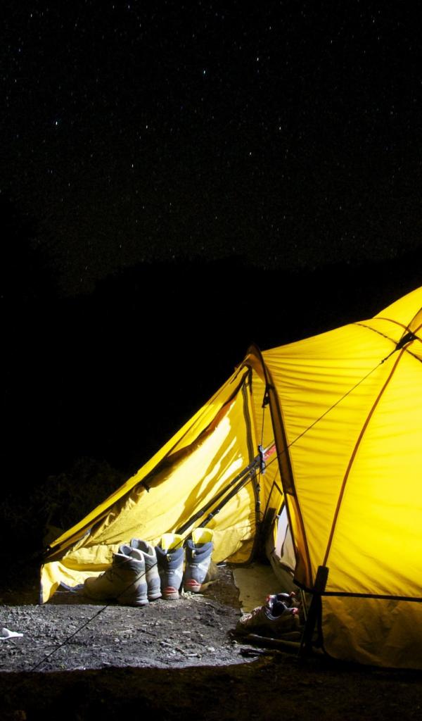 Wallpaper Yellow tourist tent under a night sky