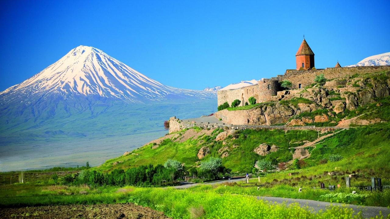 Wallpaper Armenian fortress against the backdrop of Mount Ararat
