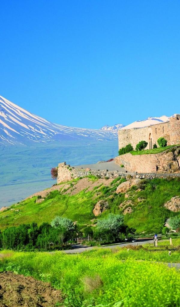 Wallpaper Armenian fortress against the backdrop of Mount Ararat