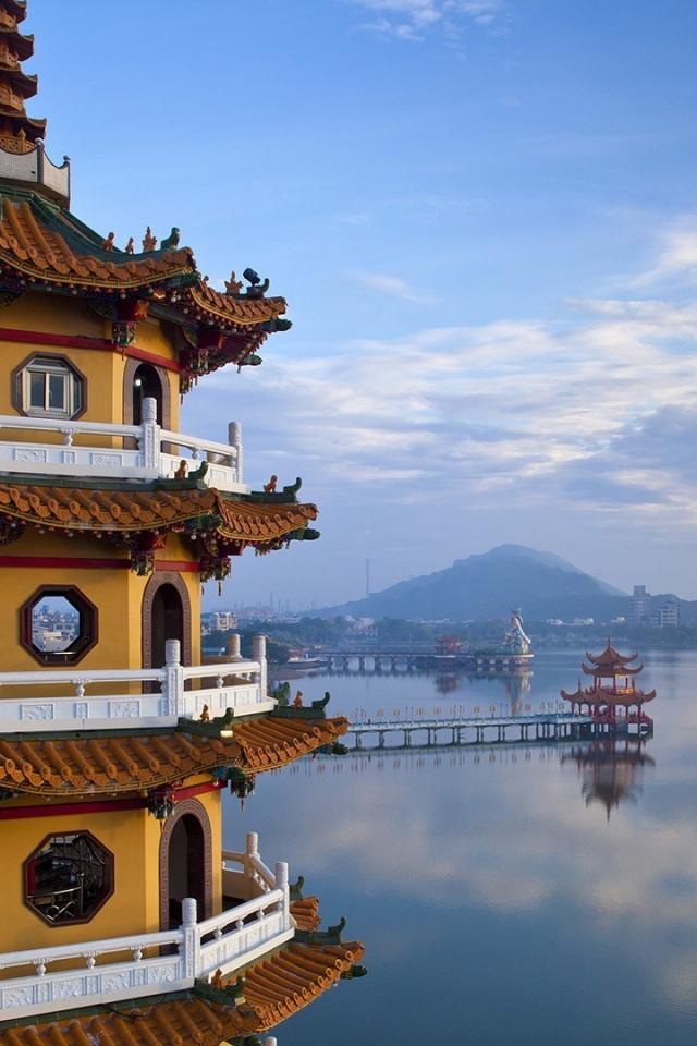 Wallpaper Beautiful gazebo on the water, Taiwan