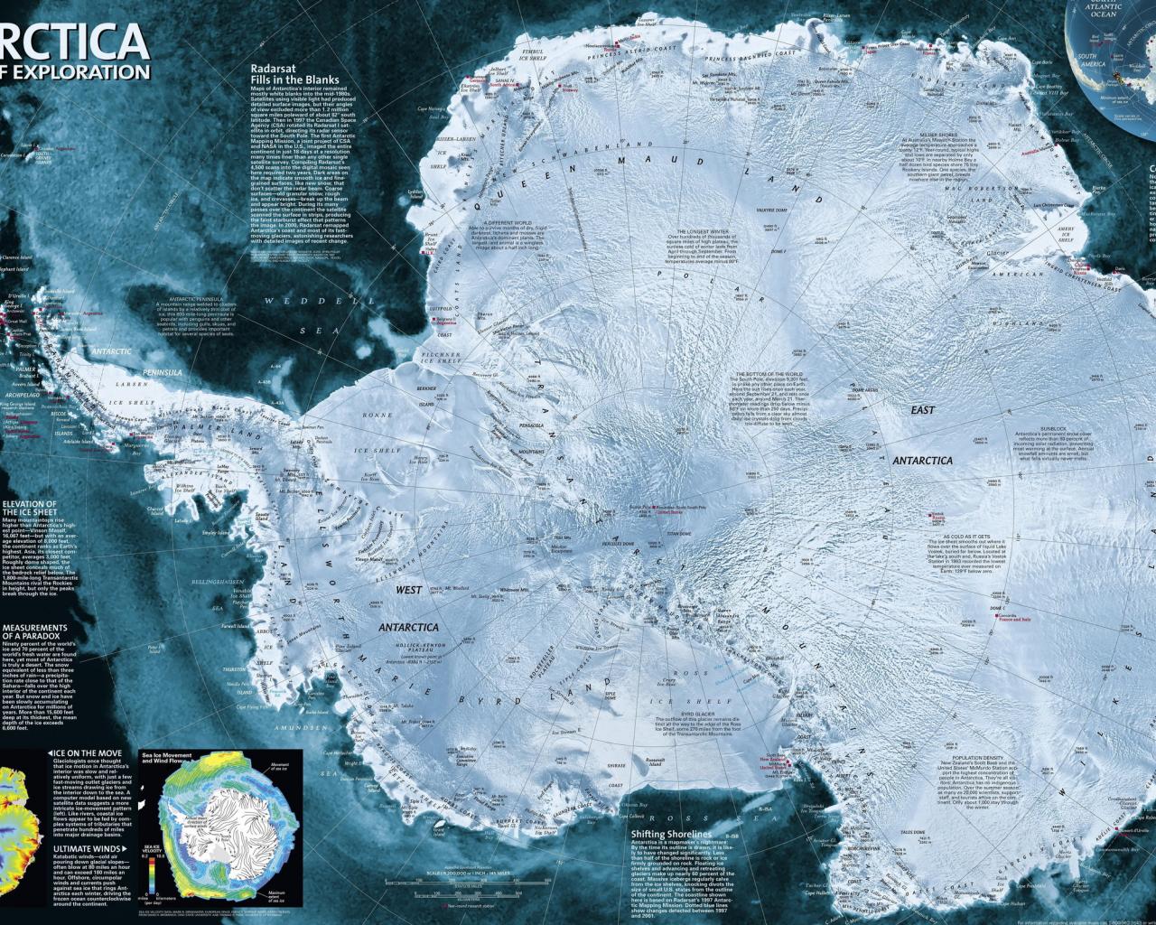 Wallpaper Large detailed map of Antarctica