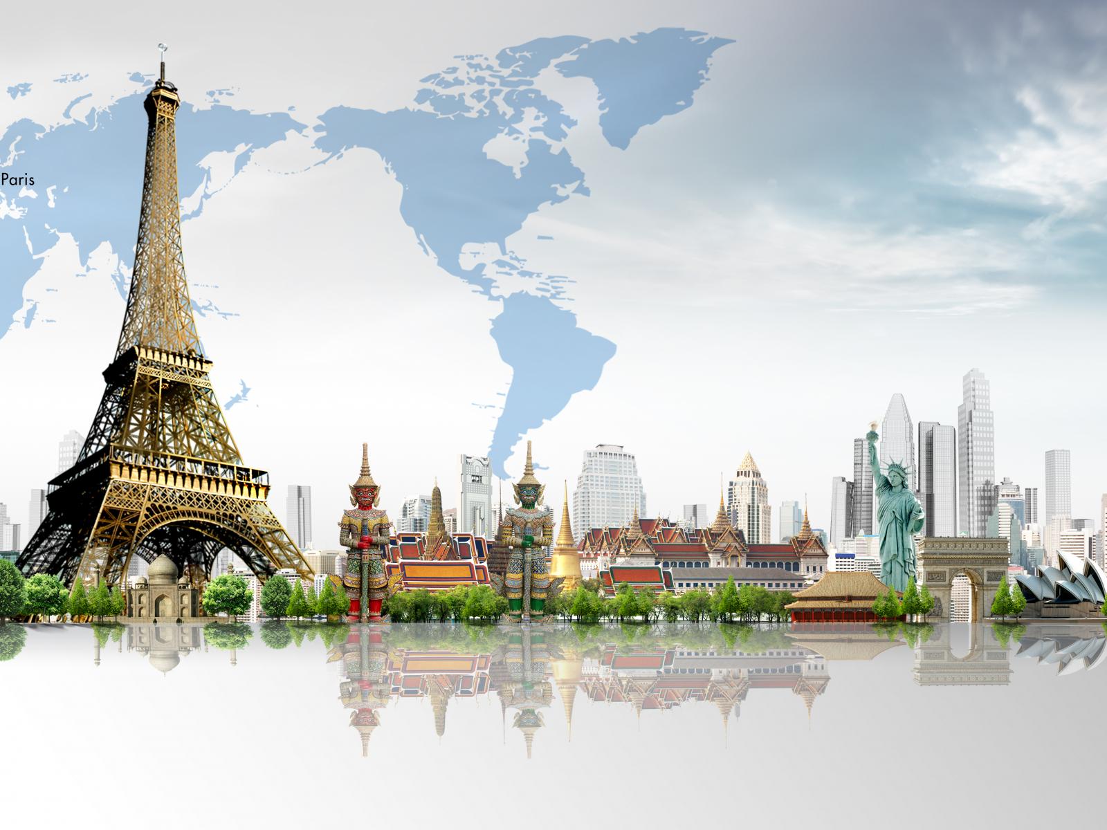 » Wallpaper Eiffel tower, Paris, world map