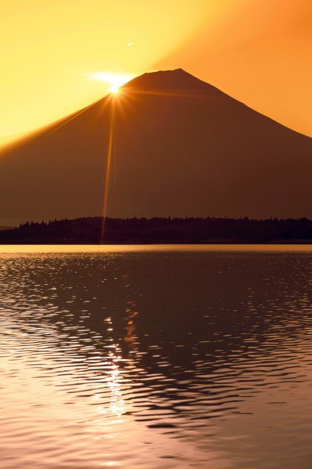 Wallpaper The sun is hiding behind the mountain Fuji