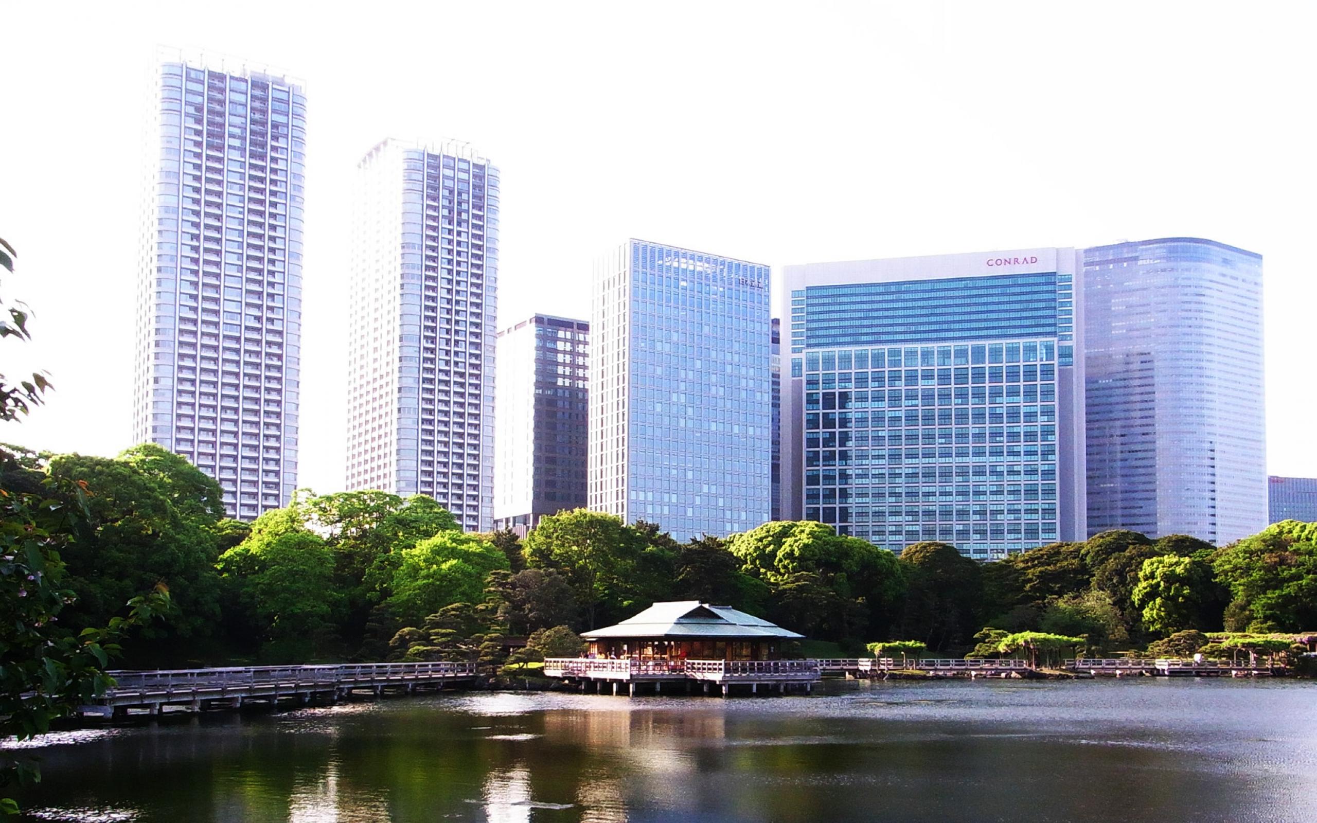 Wallpaper Lake on the background buildings in Tokyo