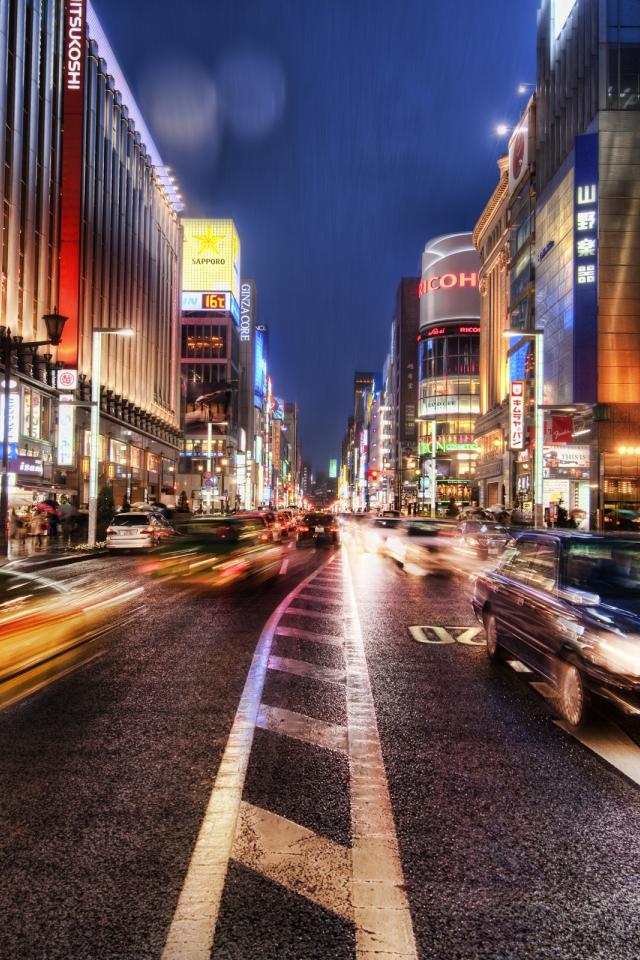 Wallpaper Night street Ginza Japan