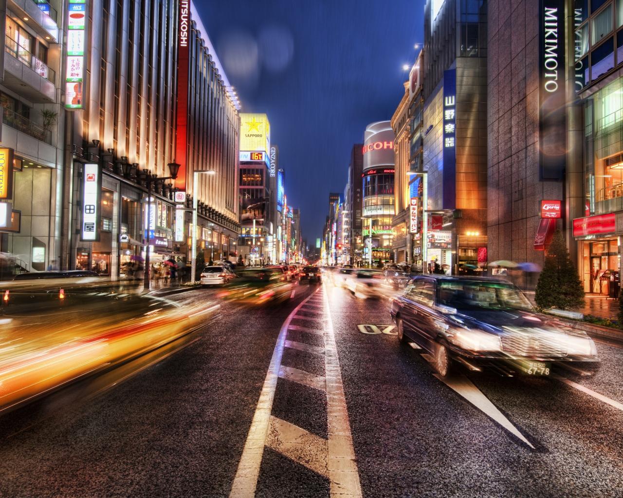 Wallpaper Night street Ginza Japan