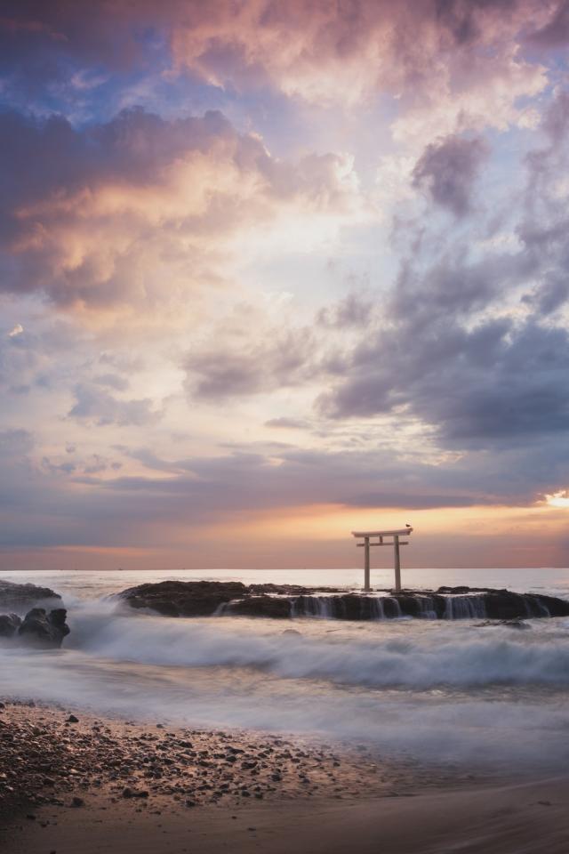 Wallpaper Japanese arch on the beach