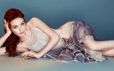 Wallpaper English actress Eleanor Tomlinson lies in a dress on a gray background
