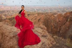 Wallpaper Beautiful actress Victoria Justice in a red dress in the mountains