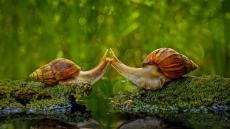 Wallpaper Kiss of two snails near the water