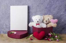 Wallpaper Two teddy bears and a gift for February 14 Valentine`s Day
