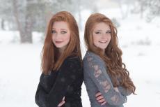 Wallpaper Two smiling red-haired sisters on the street in winter