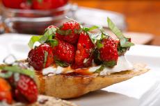 Wallpaper Piece of bread with jam, cheese and strawberries