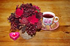 Wallpaper Cup of tea on the table with decor and candle