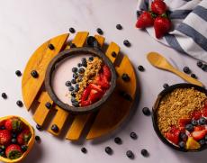 Wallpaper Dessert with yoghurt and strawberries and blueberries