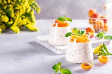 Wallpaper Muesli with milk in a plate with blueberries and bananas