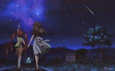 Wallpaper The girl with a bloody knife in the anime Yandere