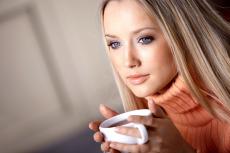 Wallpaper Beautiful blue-eyed girl with a cup of coffee