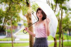 Wallpaper Asian girl with umbrella in hand