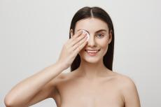 Wallpaper Real blue-eyed girl removes makeup from face