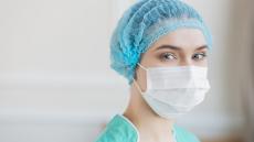 Wallpaper Funny young girl with black cosmetic mask on her face