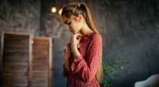 Wallpaper Beautiful girl in a spotty pink dress