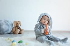 Wallpaper Little boy in a bunny costume nibbles a carrot
