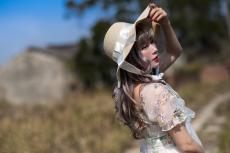 Wallpaper Beautiful asian woman in a hat in the rays of the sun