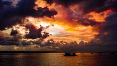 Wallpaper Black clouds in the sky at sunset over the sea