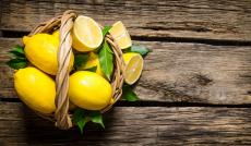 Wallpaper Beautiful yellow lemons in a basket on a wooden table