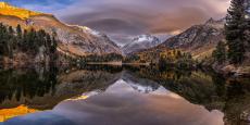 Wallpaper Mountains are reflected in the lake on an autumn day