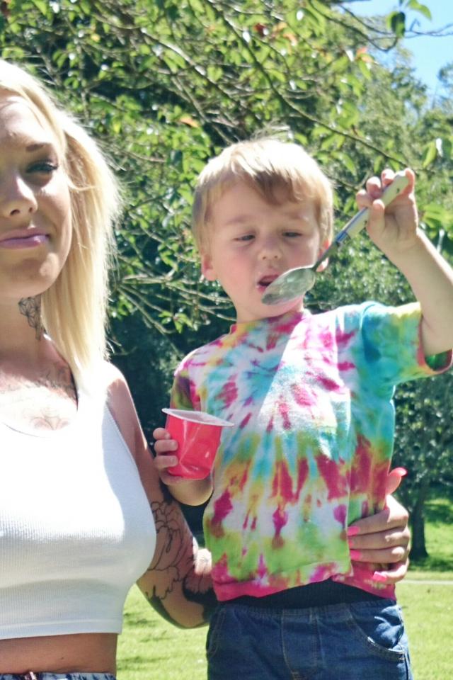 Wallpaper Tattooed woman with a child