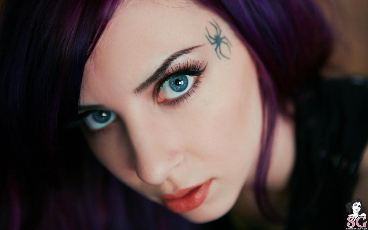 Wallpaper Spider tattoo on his temple girl