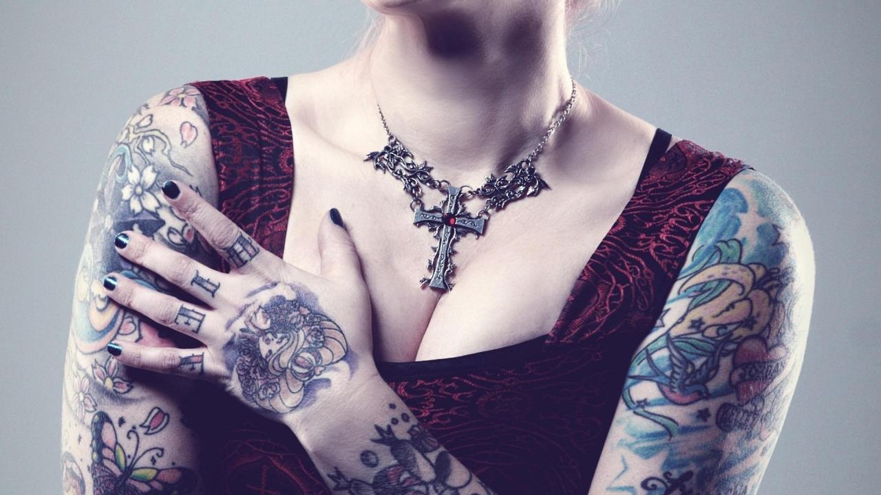 Wallpaper Beautiful pendant on his chest tattooed girl